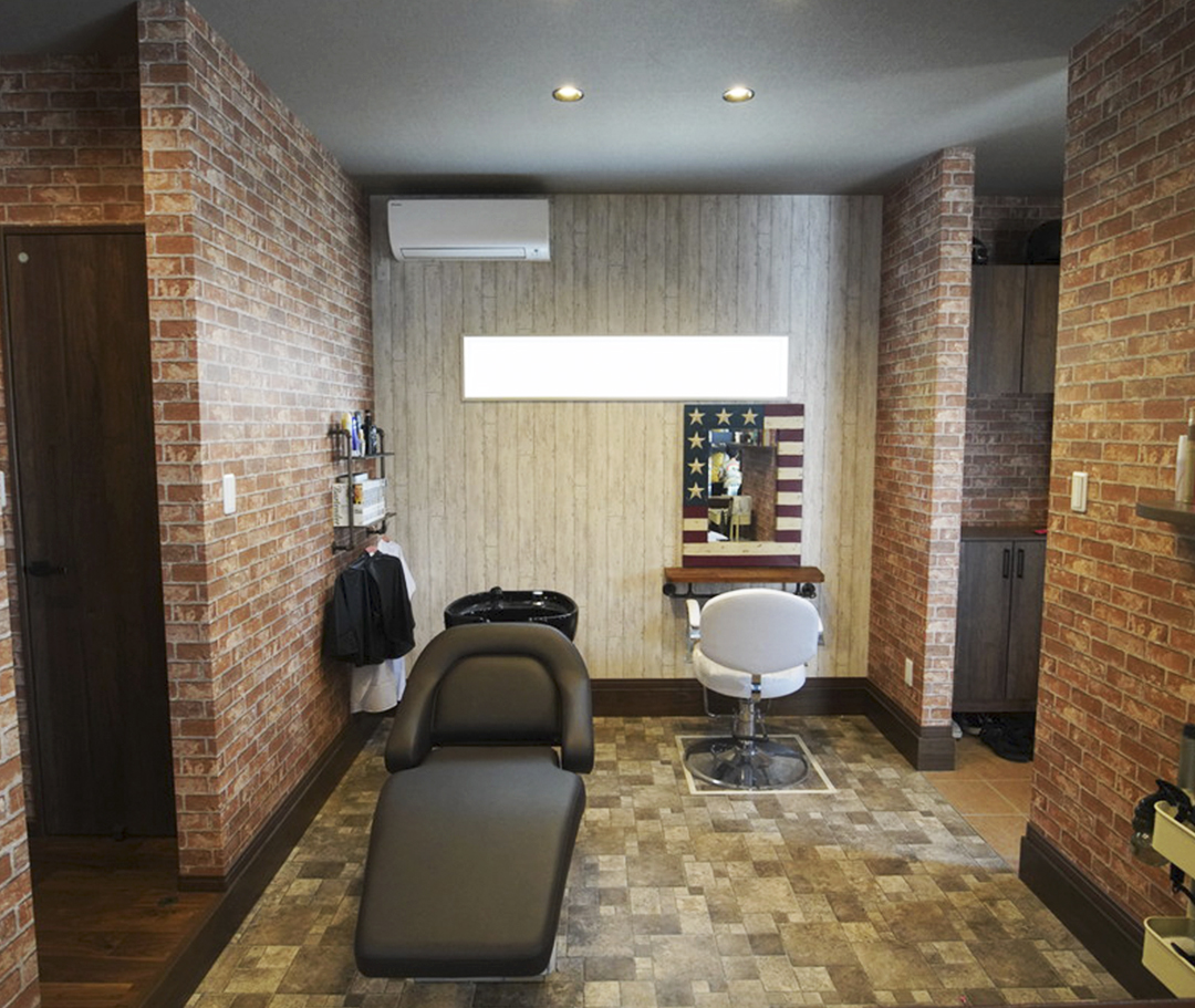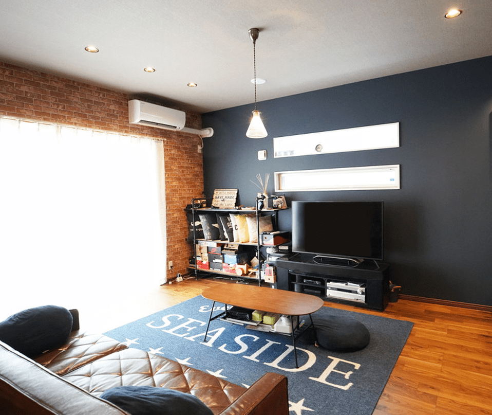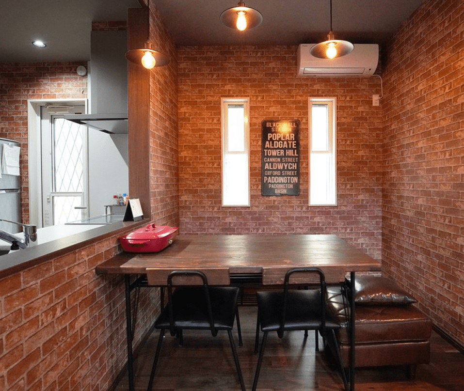 レンガ調の壁紙をブルックリンスタイルのインテリアにコーディネートしました。