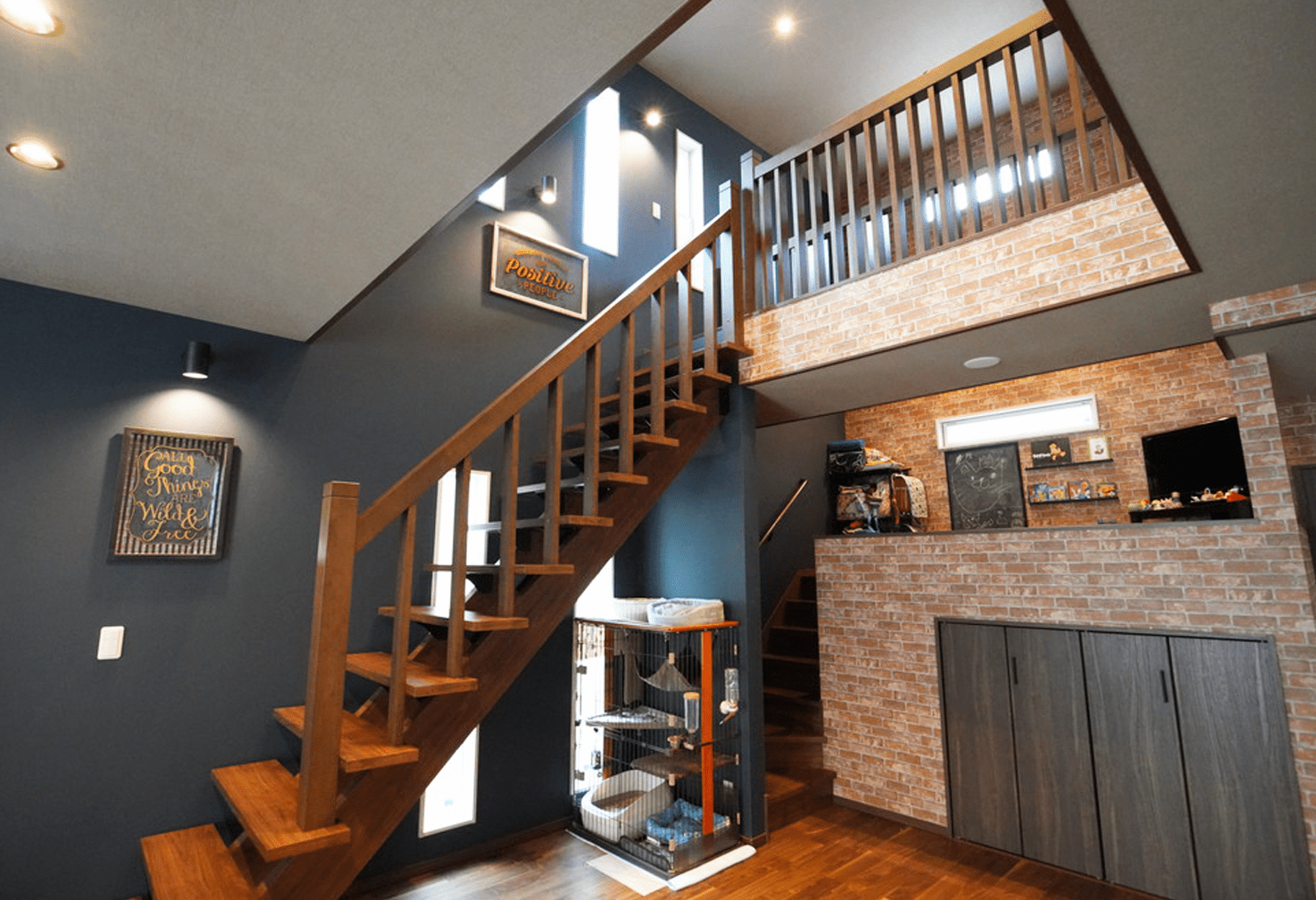 ストリップ階段やスキップフロアで空間を楽しむ、